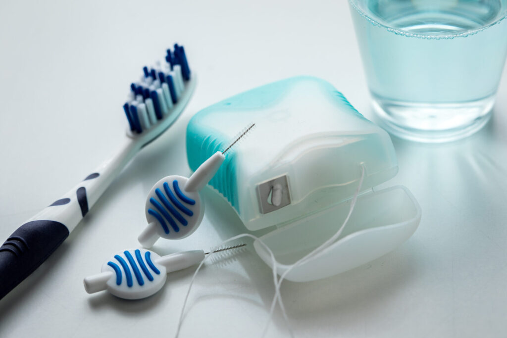 フロスを基本として、歯のすき間が開いている方は、歯間清掃のときに歯間ブラシを使ってみる選択肢も。